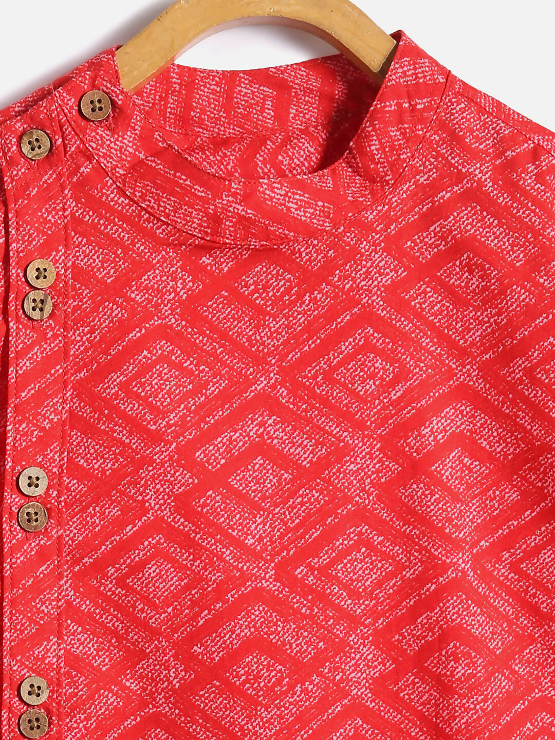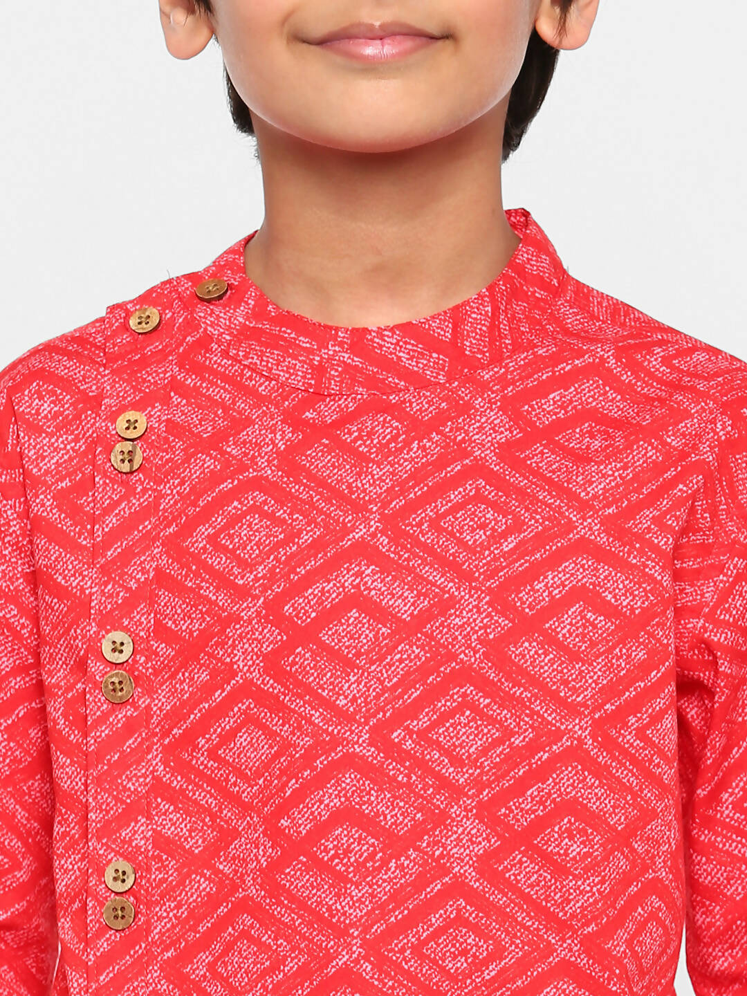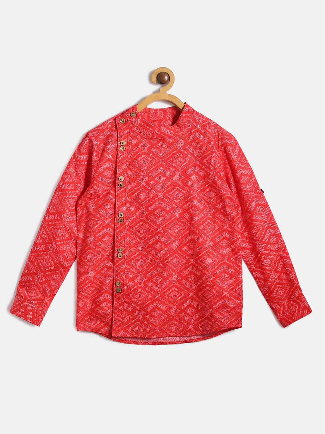 MANET Indo style Full Sleeves shirt is most desirable style during special celebrations. Made in 100% Cotton Fabric , it comes with beautiful prints  making it worthwhile. The wooden buttons are placed keeping in mind design and comfort for every child