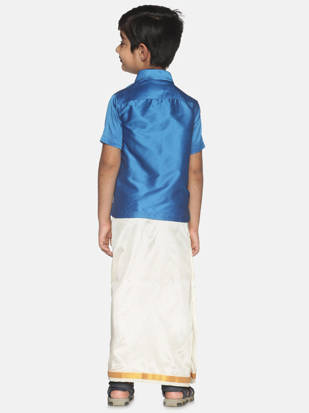 Blue and white solid Shirt ,has a shirt collar, short sleeves