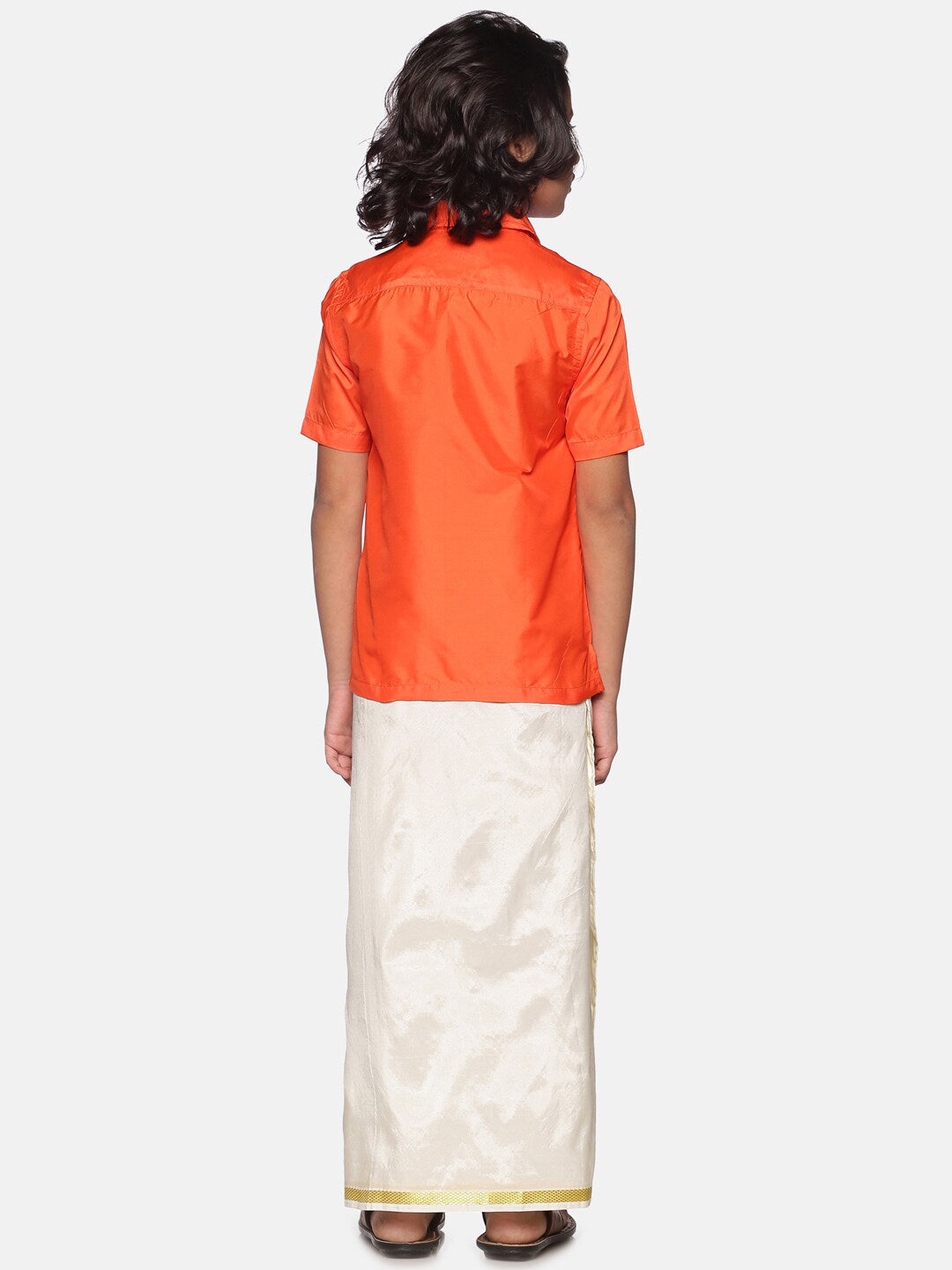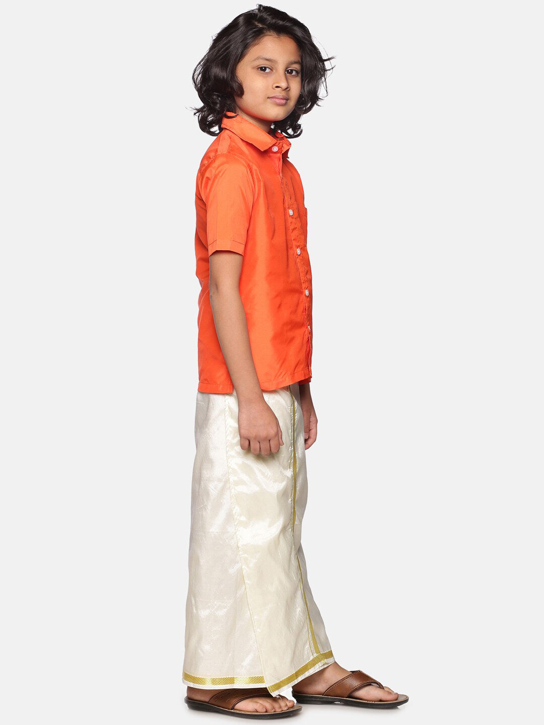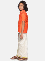 Sethukrishna Boys Orange & White Solid Shirt with Dhoti Set