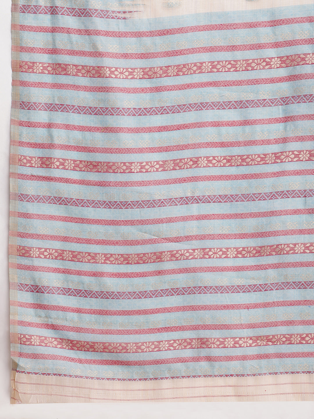 Janasya Beige Silk Blend Ikkat Jacquard Saree
