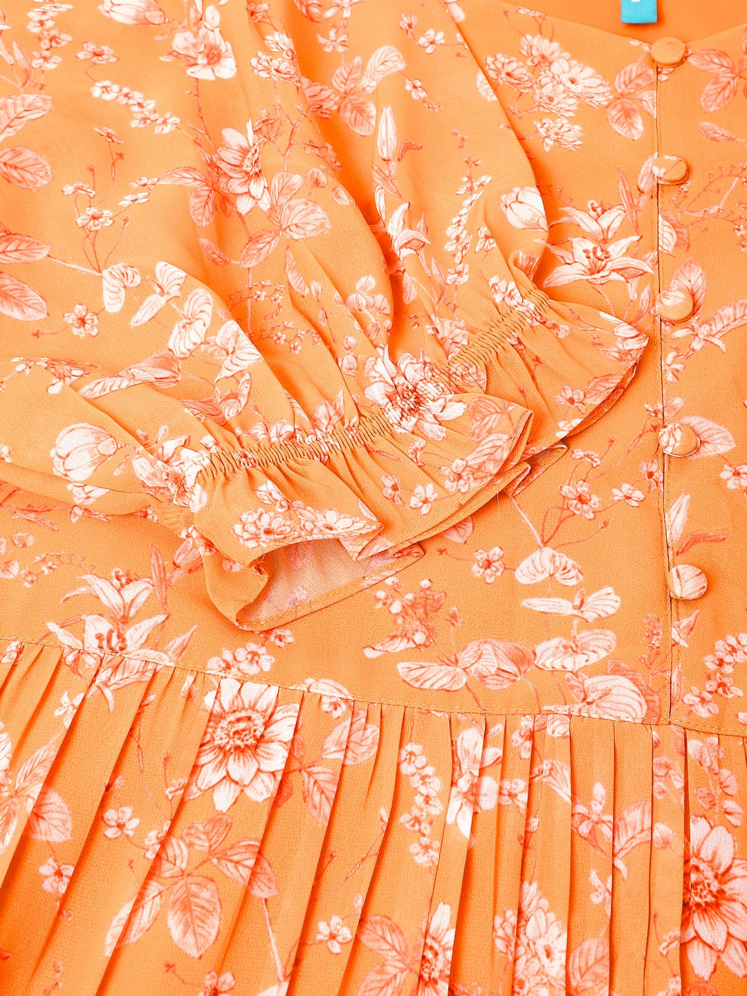 Janasya Bright Georgette Floral Tiered Dress Top Fabric: Georgette Top Style: Tiered Top Color: Bright Top Pattern: Floral Top Neck: Sweethear...