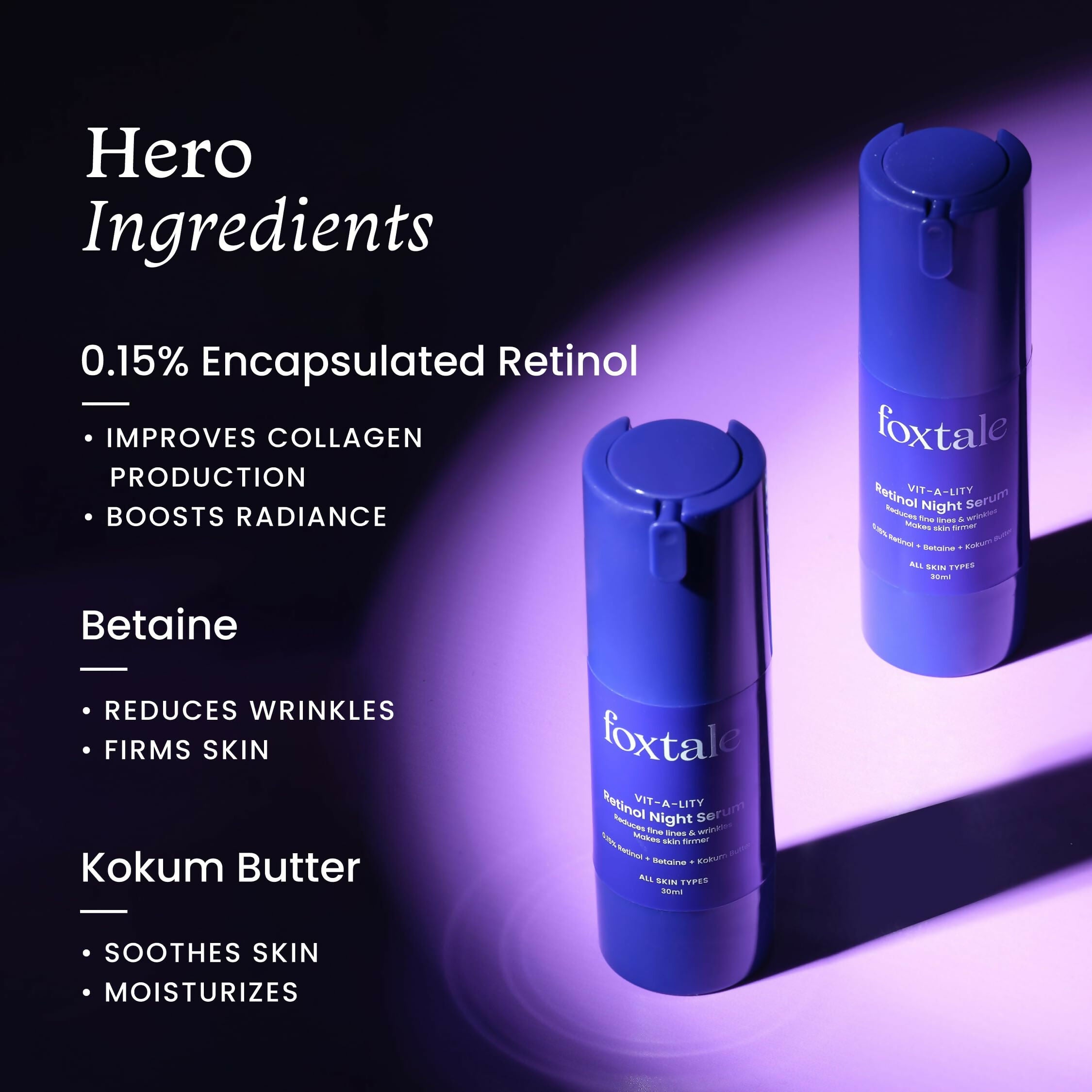 Foxtale 0.15% Beginner Friendly Retinol Night Serum, Anti-Aging, Reduces Fine Lines and Wrinkles, For Younger-looking Skin - Distacart