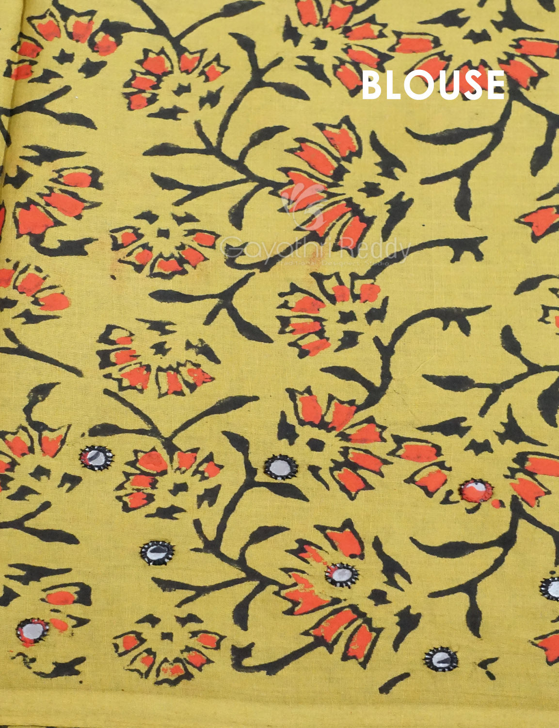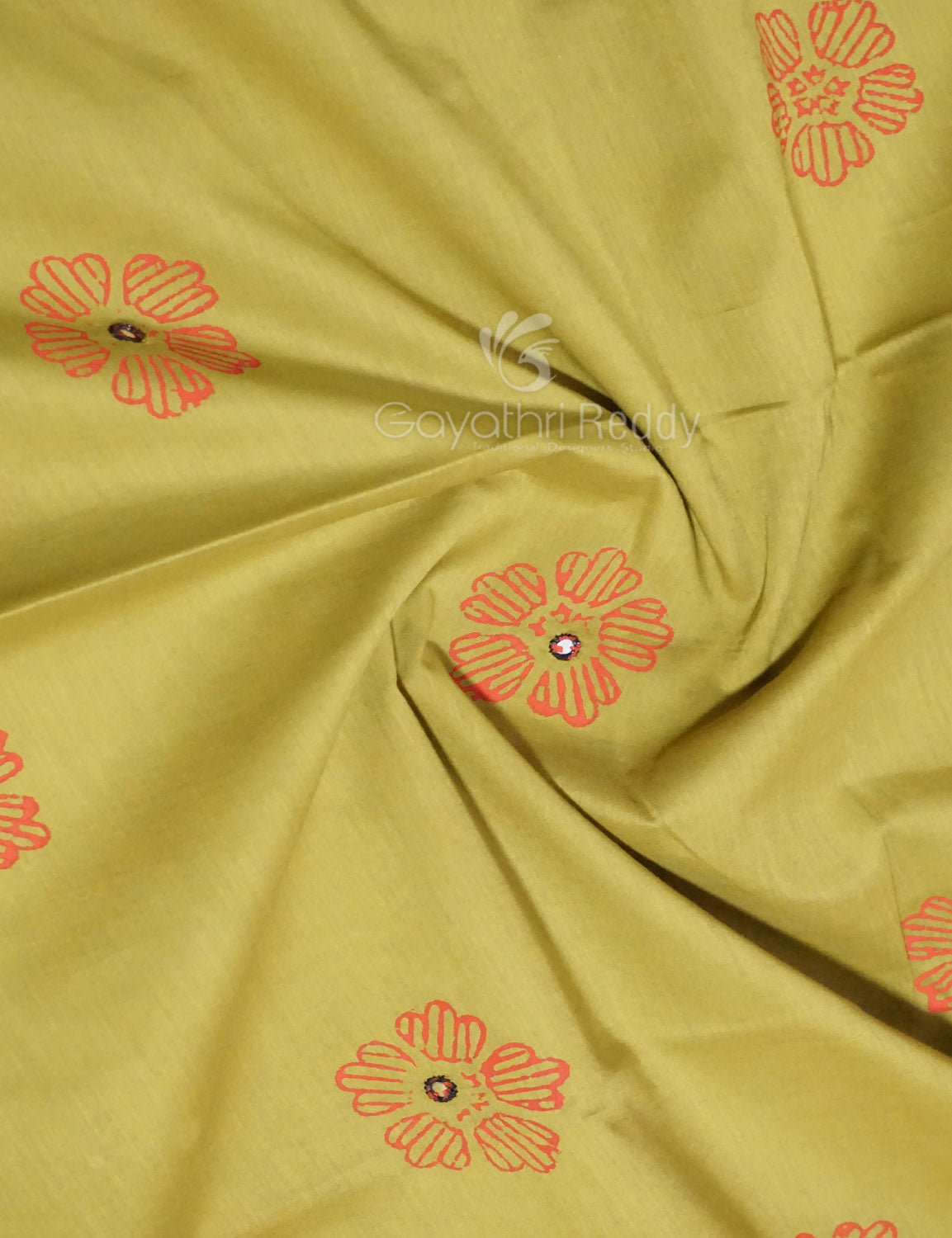 Saree Colour : Mehndi green colour combination with block print design annd mirror embroidered all over the saree.