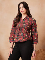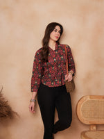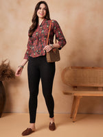 InWeave Coral Red Abstract Printed Shawl Neck Top - Distacart