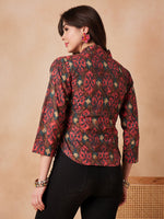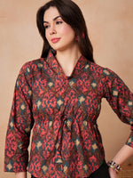 InWeave Coral Red Abstract Printed Shawl Neck Top - S