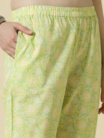 Yufta Green Pure Cotton Floral PrintThreadWork Kurta Dupatta Pant Set Product Details  Green printed kurta with trousers and dupattaKurta design: ...