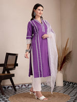 Yufta Purple Premium Cotton Kurta Dupatta Pant Set - Distacart
