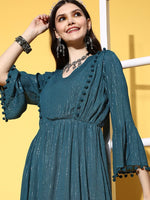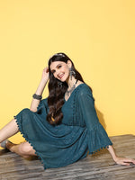 Your outfit will say everything about your style when you step out wearing this dress. Tailored with a conversational print, and a flared sleeve, it will lend you the desired smart look.