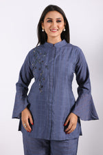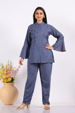 Morchari Co Ord Set With Hand Embroidery - BlueAbout the Product: Pack Contains: 1 Top 1 Pant Length of Kurta: 29 Sleeve type: Long Sleeves Fab...