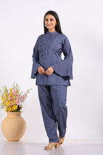 Morchari Co Ord Set With Hand Embroidery - Blue - Distacart