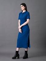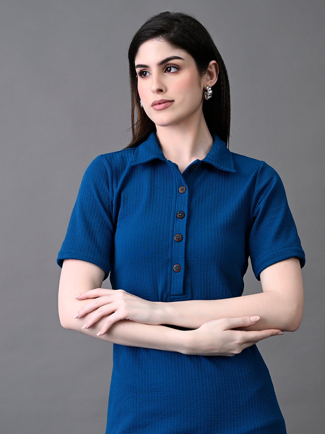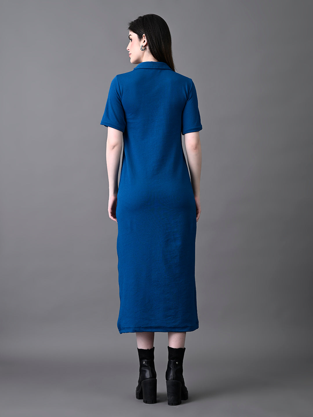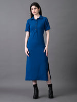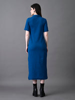 Myshka Women's Elegant Blue Midi Dress With Collared Neckline Pack Contains: 1 DRESS Top Length of Kurta: 51 Top Shape: Relaxed Top Fabric: P...