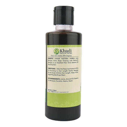 Khadi Natural Herbal Hair Oil Amla and BhringrajIngredients: Amla Almond oil Sesame oil Bhrigraj Harathki Henna Neem Directions For Use: Take the r...