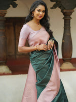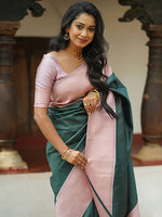 Kalini Zari Banarasi Saree Product Details Design Details Green and pink, gold toned banarasi saree Solid saree with woven design border  Has ...