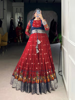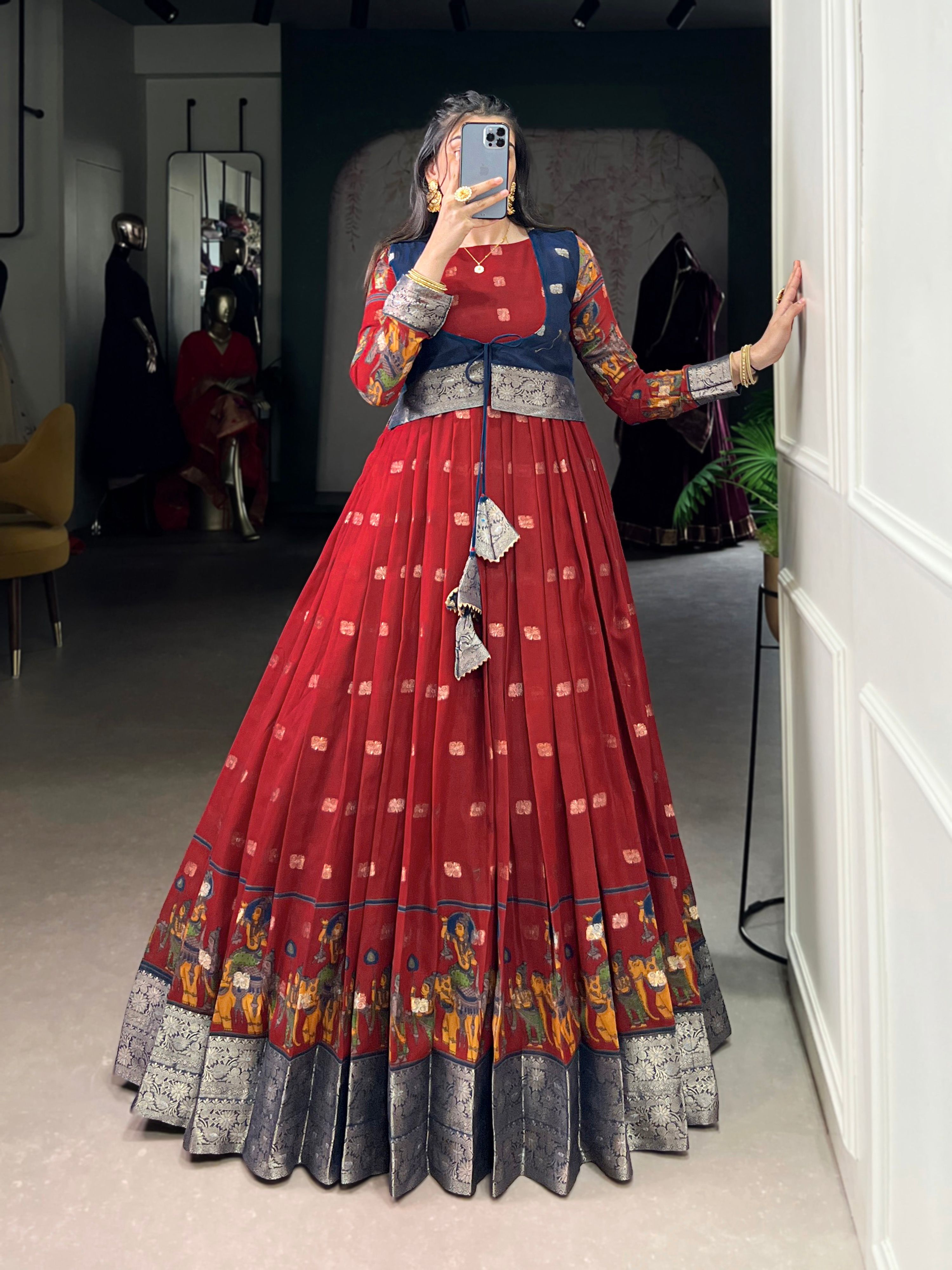 Lorenvalley Fashion Maroon Poly Cotton Kalamkari Print With Zari Weaving Work Border Gown with Koti