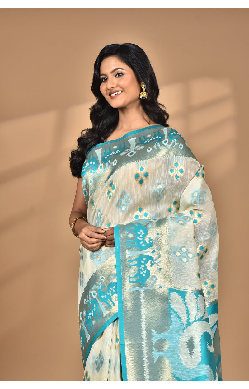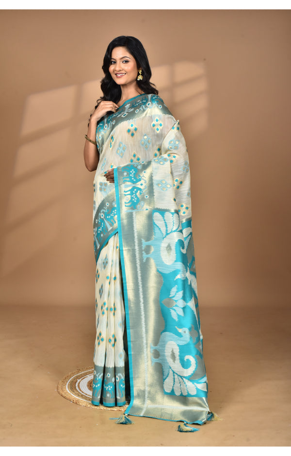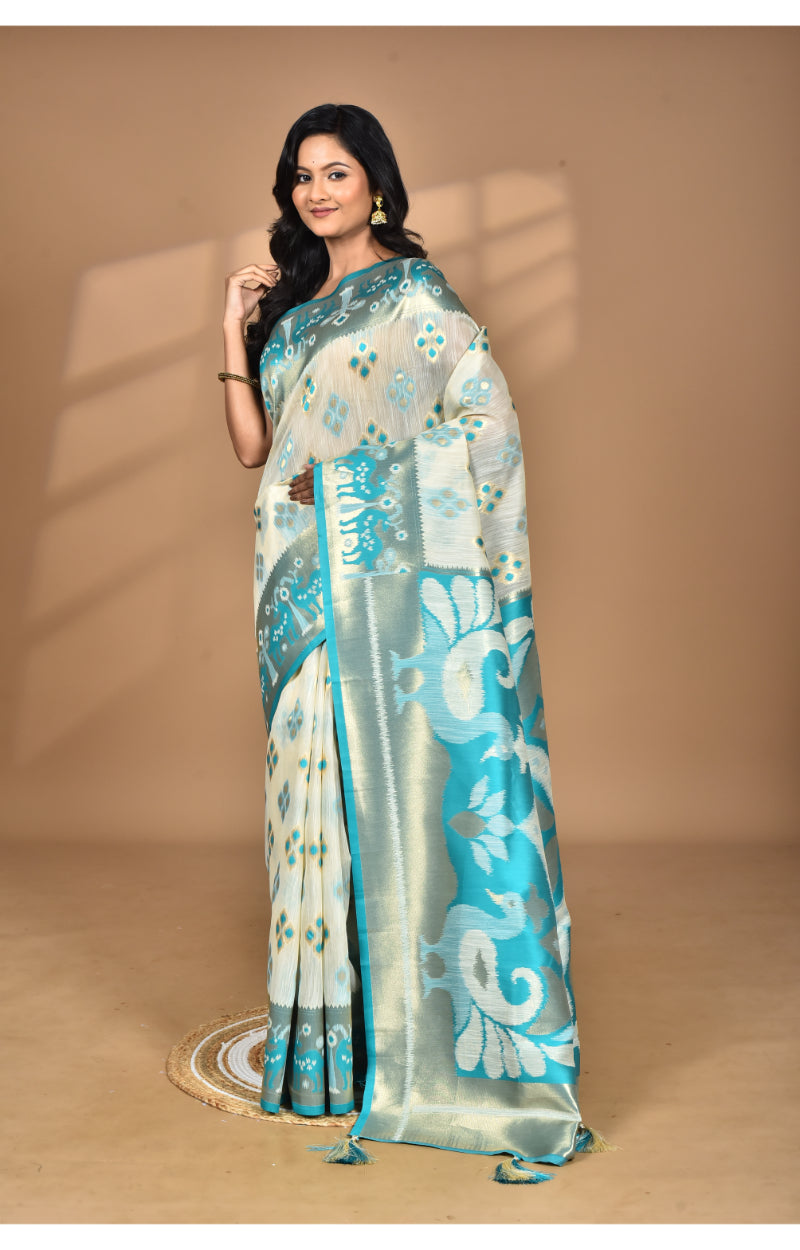Morchari Women Desgin Two Dai Linen Saree-Multi