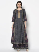 Aniyah Rayon Dark Grey Color Block Print Anarkali Kurta (AN-200K):