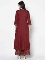 Aniyah Rayon Maroon Block Print Anarkali Palazzo Set (AN-212K) - S