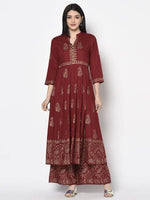 Aniyah Rayon Maroon Color Block Print Flared Slip-On Palazzo (AN-213K) - S