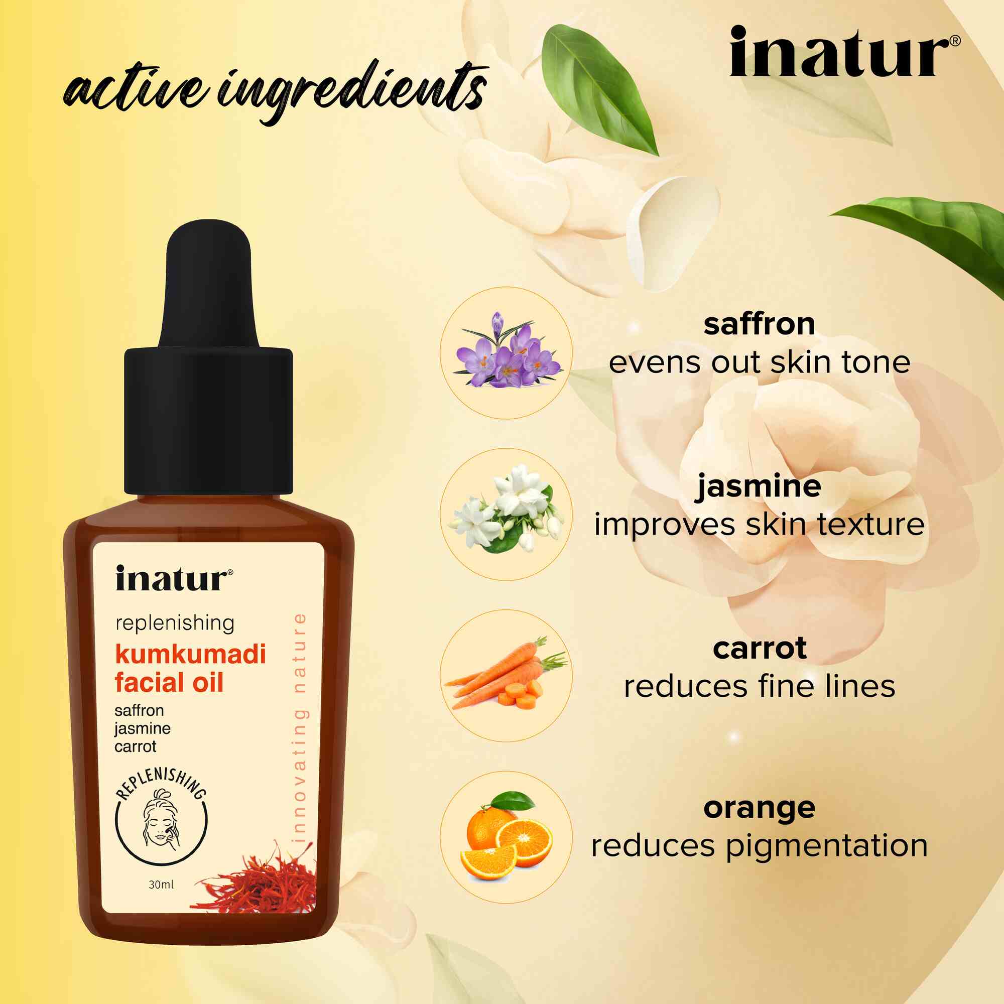 Inatur Kumkumadi Ayurvedic Facial OilBenefits: Improves texture Clears complexion Fights pigmentation Controls acne Evens under-eye circles Clears ...