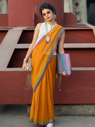 Suta Mustard Solid Mul Cotton Saree