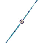 • An evil eye thread rakhi, designed to ensure that your brother stays happy and healthy everyday, and your bond strengths even more. Lightly embellished and comfortable for all day wear.