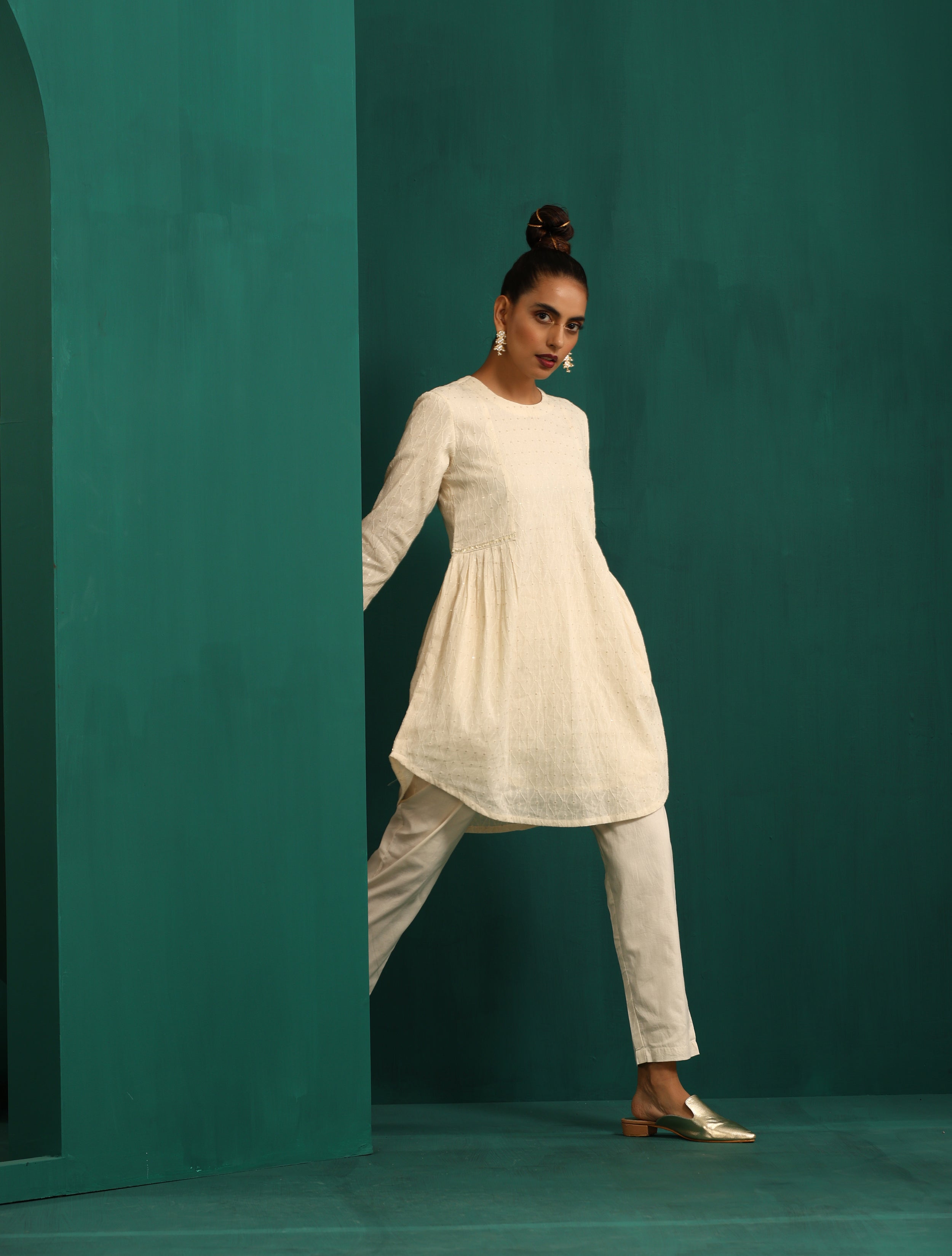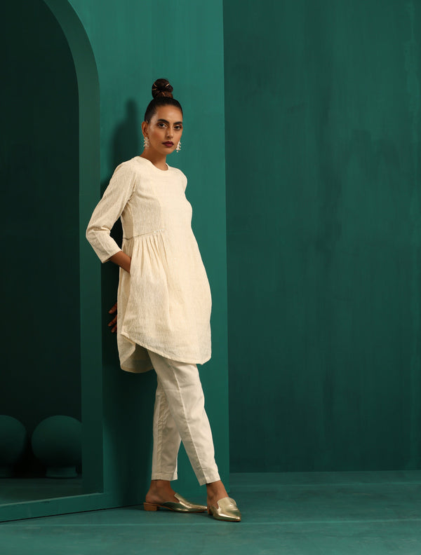 trueBrowns Ivory Tonal Cotton Side Gathers Co-ord Set