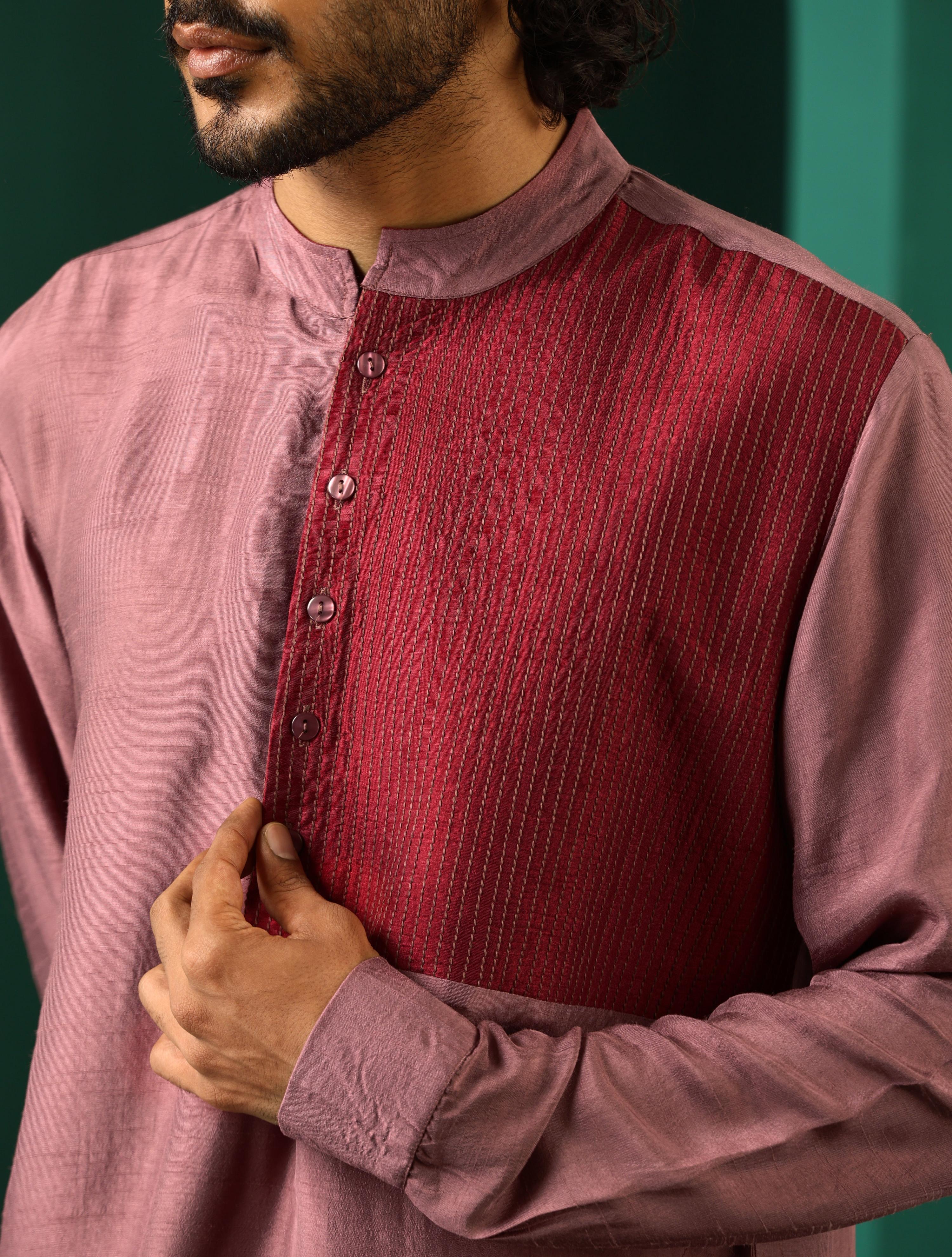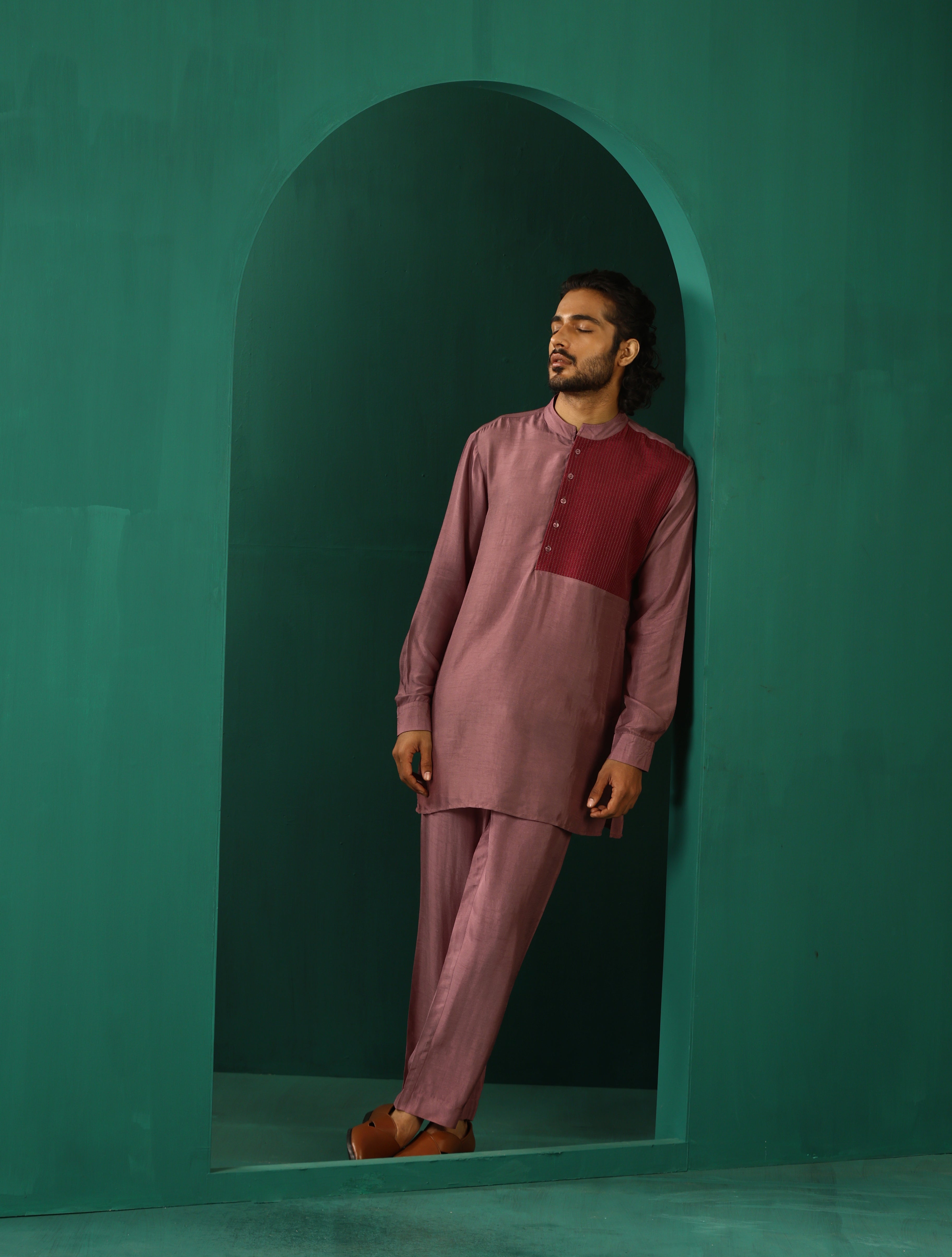 trueBrowns Men's Light Mauve Silk Co-ord Set
