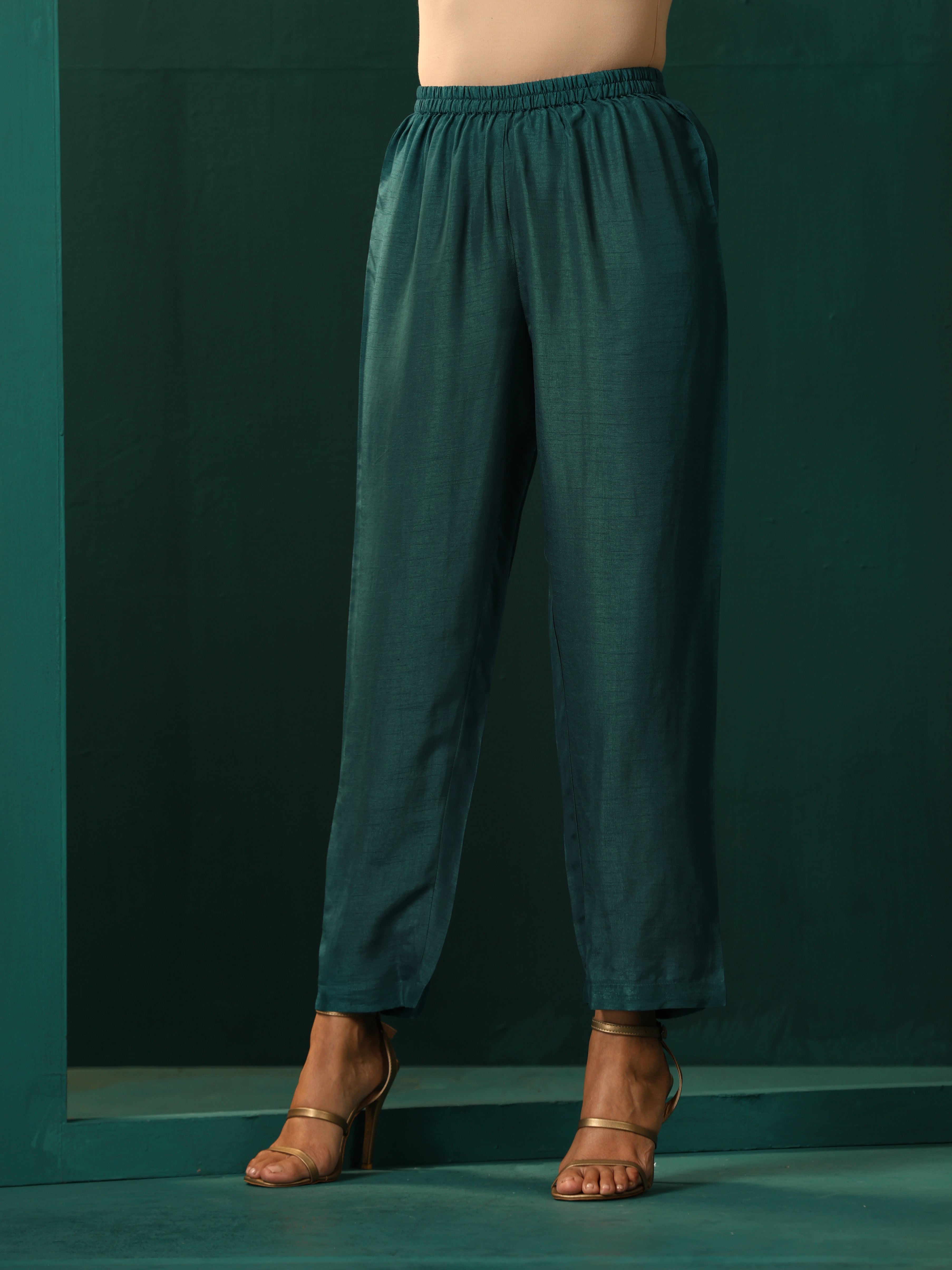 trueBrowns Teal Silk Handkerchief Kurta Pant Set