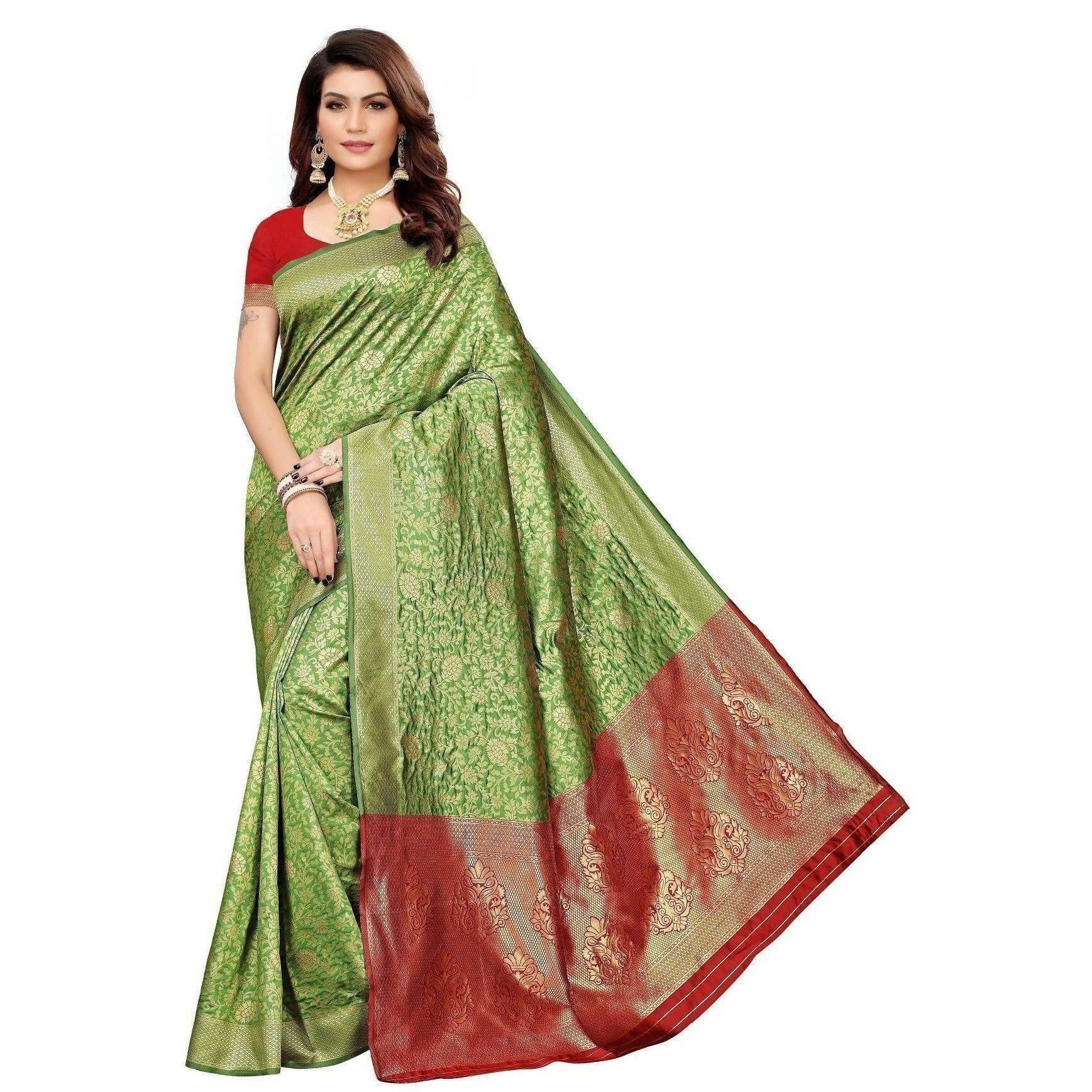 Vamika Banarasi Jaquard Mehandi Green Weaving Saree (BANARASI 08) - Mehandi Green