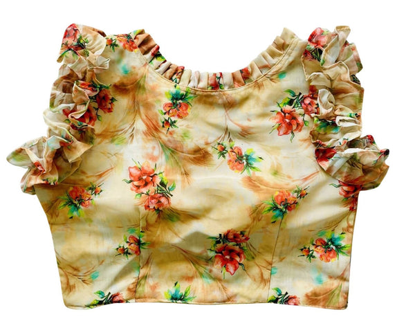Vamika Cream Georgette Frill Blouse Work: Frill Fabric: Georgette Color Top: Cream Chest: Free Size 38 to 42 Alterable Length: 15.5 Sleeves: ...