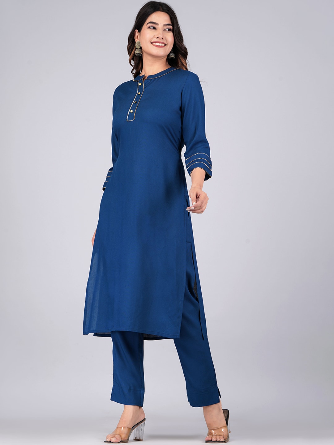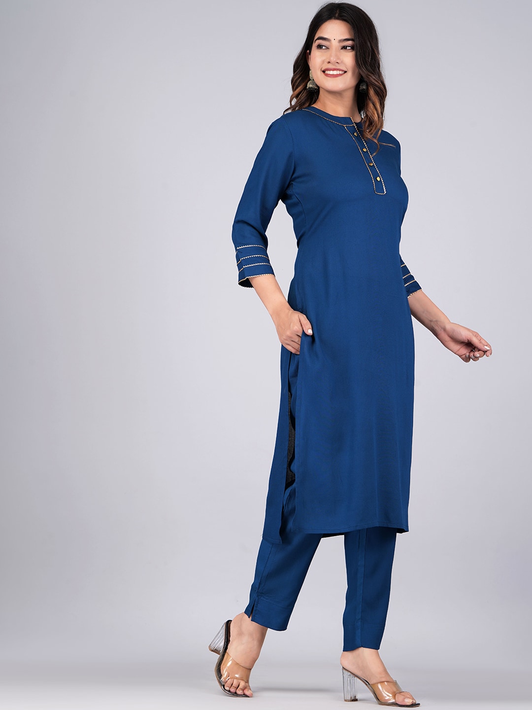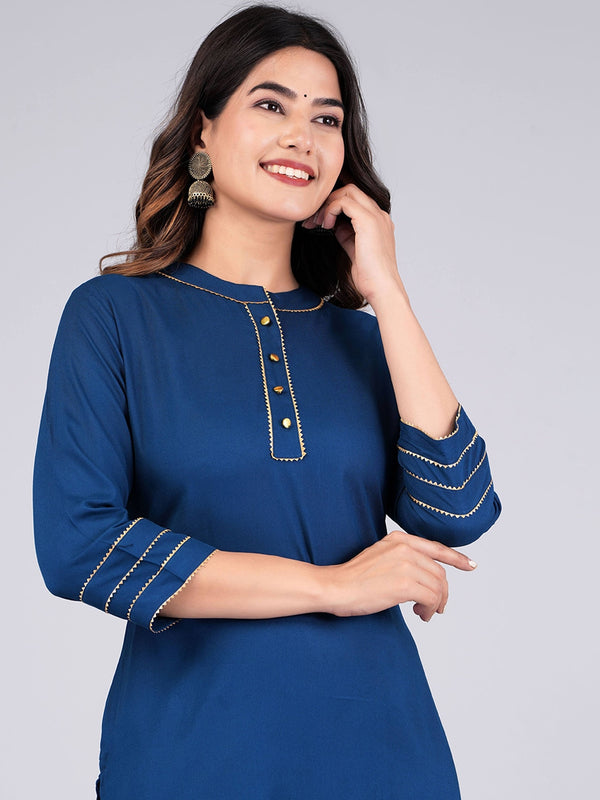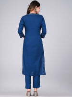 Navy blue & gold solid Kurta with Trousers