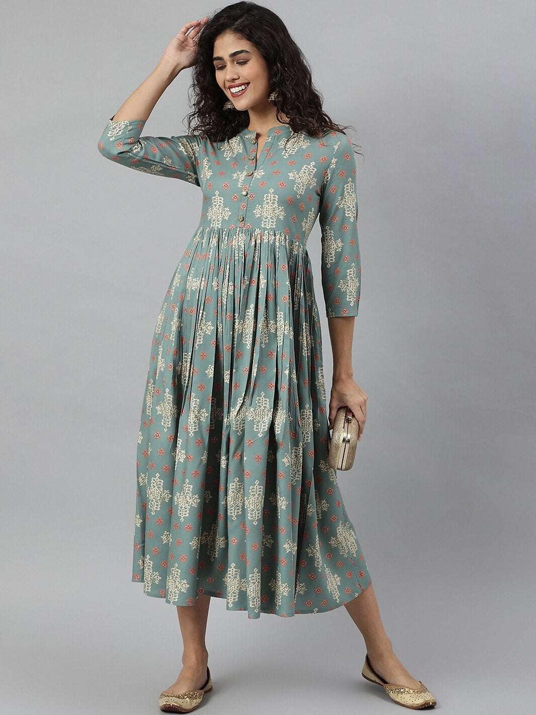 Kalini Women Turquoise Blue & Beige Ethnic Motifs Printed Anarkali Kurta - Distacart