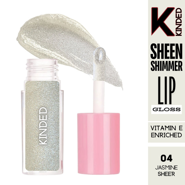 Kinded Sheen Shimmer Lip Gloss adds the perfect touch of shimmer and tint to elevate your look - without overpowering your lips. It delivers a high-shine, glossy finish with a non-sticky, lightweight texture for all-day comfort. Infused with nourishing ingredients like vitamin E, it hydrates instantly while keeping your lips soft and moisturized. This gentle, feel-good formula gives your lips a radiant glow and subtle sparkle, made with kindness for everyday wear.