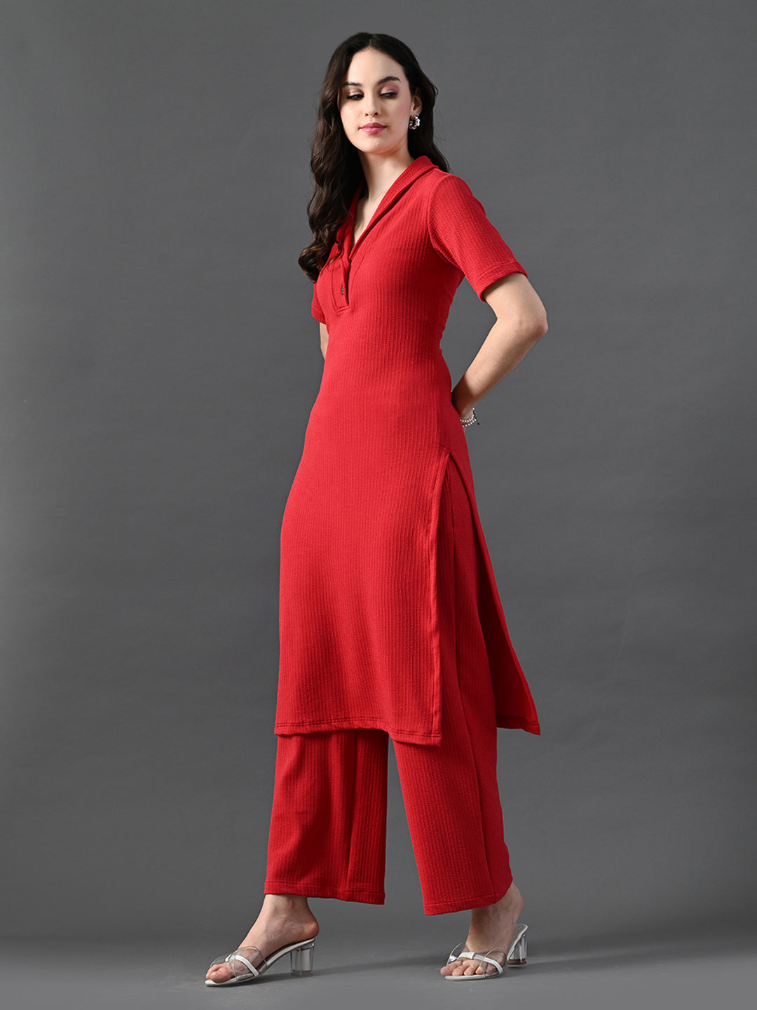 Myshka Women's Red Kurta Set Pack Contains: 1 Top & 1 Trouser Top Length of Kurta: 38 Top Shape: Relaxed Top Fabric: Polyester Top Color:...