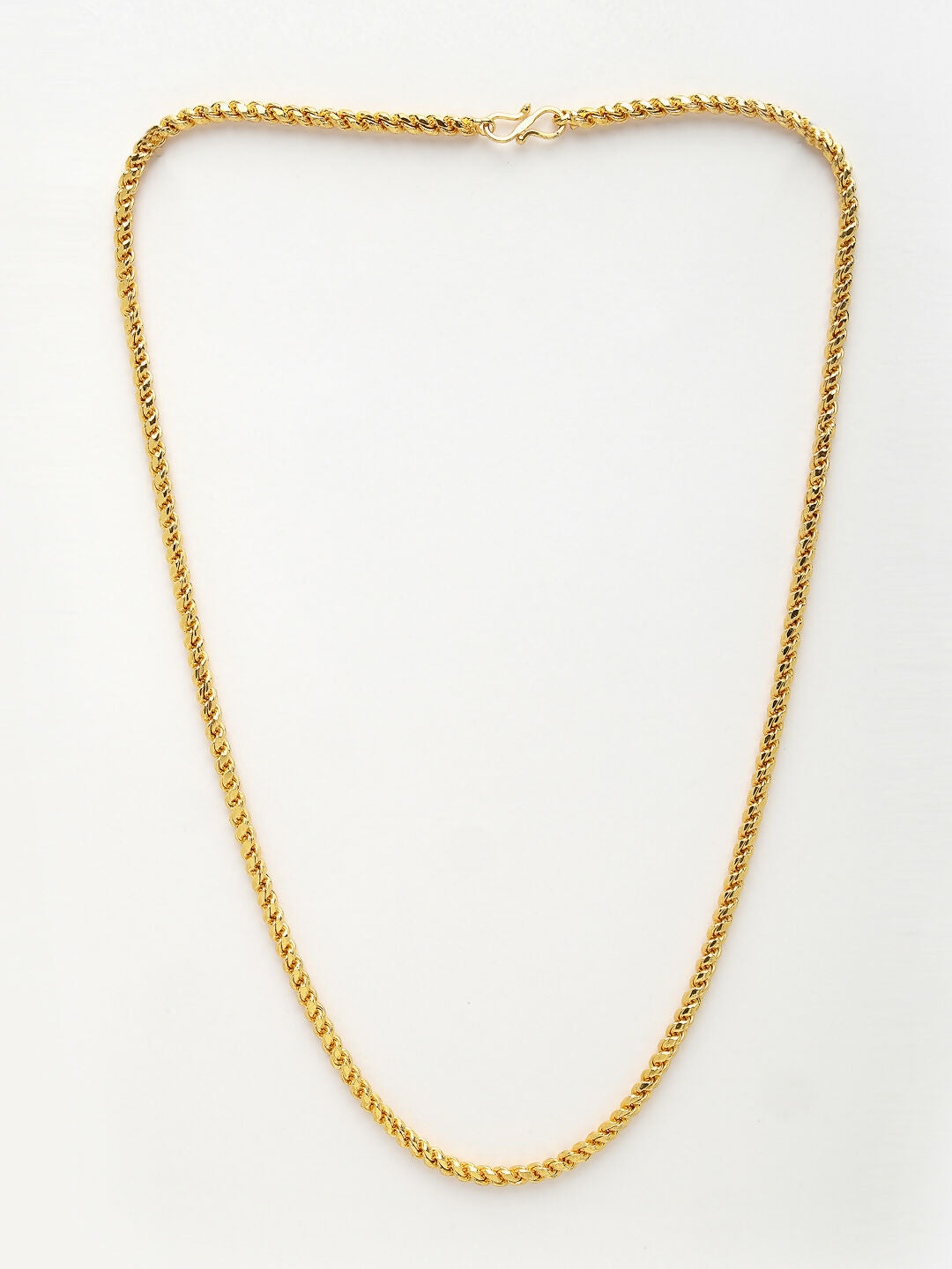 • Style Note: The NVR Men Gold-Plated Stainless Steel Chain is a luxurious and versatile accessory that adds a touch of elegance to any outfit. The gold-plated finish gives it a rich and sophisticated appearance, making it suitable for both casual and formal occasions. This chain can be worn solo for a subtle statement or layered with other necklaces to personalize your look. Pair it effortlessly with casual attire like jeans and a polo shirt, or elevate your style with a button-down shirt and blazer for more formal settings. Its durable stainless steel construction ensures longevity, making it a timeless addition to your accessory collection.
