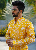 Prazu Fashion Yellow Lucknowi Silk Kurta With PajamaAbout the Product: GENDER : male Colour : Yellow Work/Pattern : Lacknowi Fabric : Silk Neck Lin...