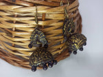• Terracotta peacock dazzling temple jhumkas are combination of temple wear with peacock studs. These jewelleries are designed and crafted with a finish rendering a unique fusion of traditional and contemporary style to suit any occasion. These hand painted earrings are perfect for daily and party wear. This is from registered firm, ClayHome. ClayHome's vision is to provide finest and best eco-friendly jewellery. The Jewellery uniquely designed by women artisans.