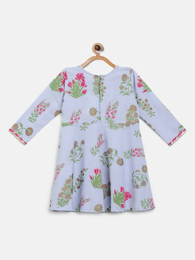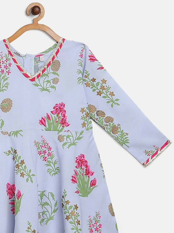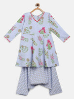 Ahalyaa Blue Crepe Printed Kids Kurta With Harem Pants For Girls
