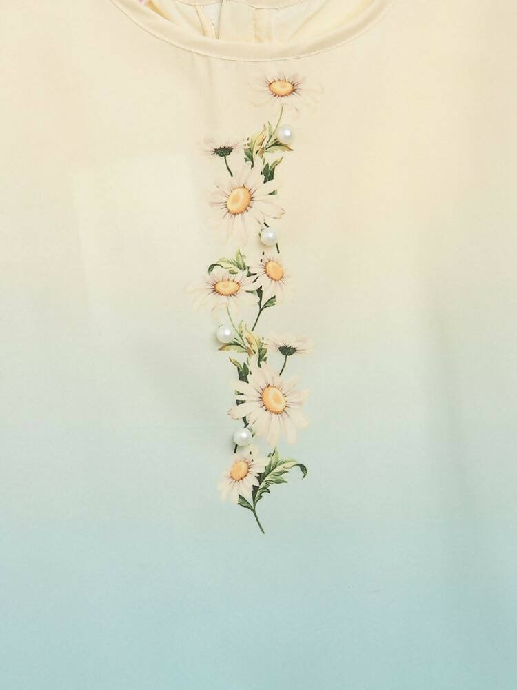 Pastels, it's girly & cute for a little girl. The lightweight pretty 3 piece outfit has pretty daisies strewn all over with tiny pearl buttons to add a bit of detail. Very comfortable for a full-day outfit for the child. Wash In Cool Water, Use Mild Detergent, Do Not Bleach, reverse iron, wash dark colors separately, and do not soak.