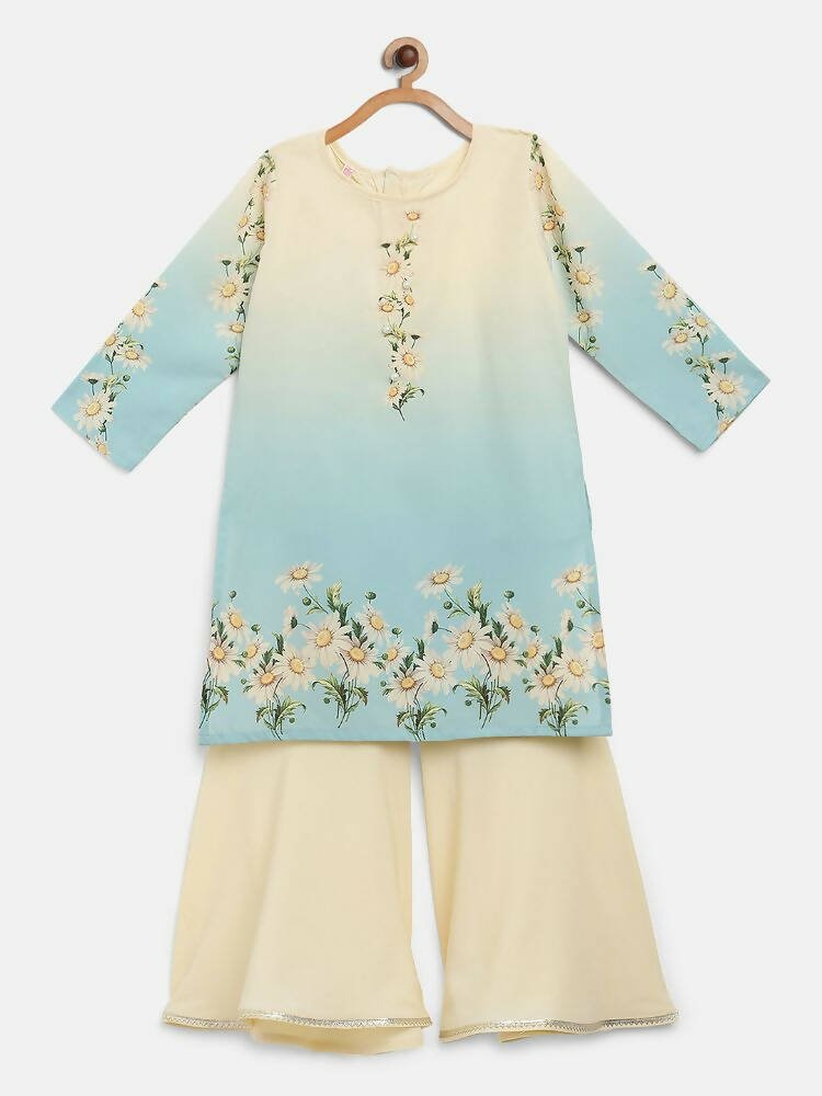 Ahalyaa Multi Crepe Printed Kids Kurta Sharara Sets With Dupatta For Girls Pastels, it's girly & cute for a little girl. The lightweight pretty...