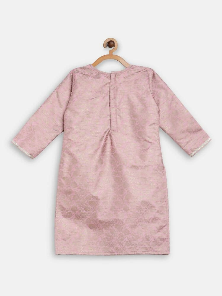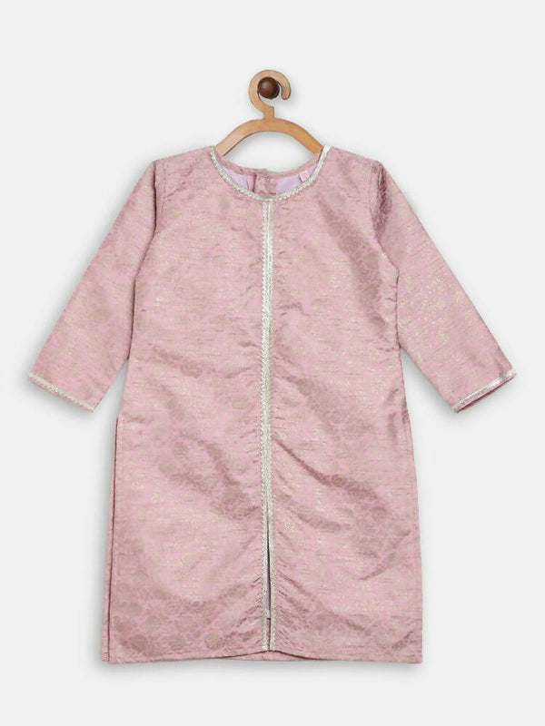 Ahalyaa Pink Poly Silk Straight Kids Kurta Palazzo Set For Girls