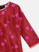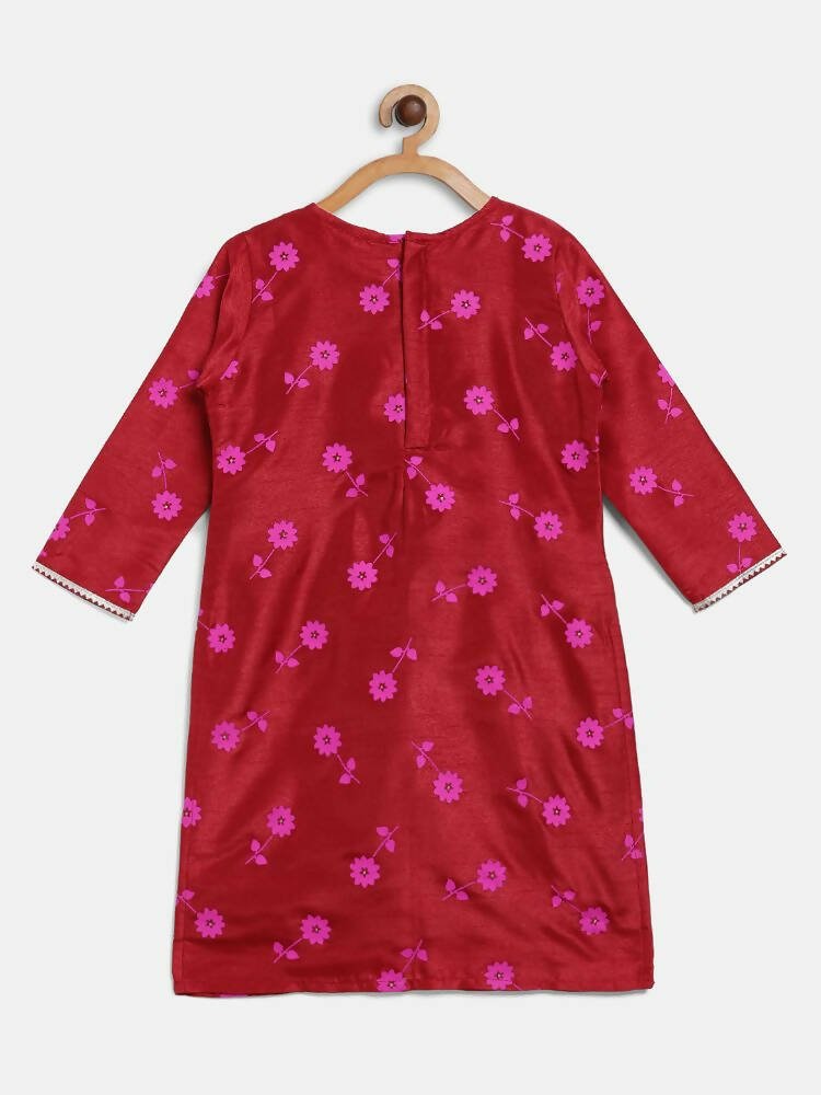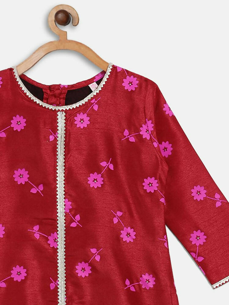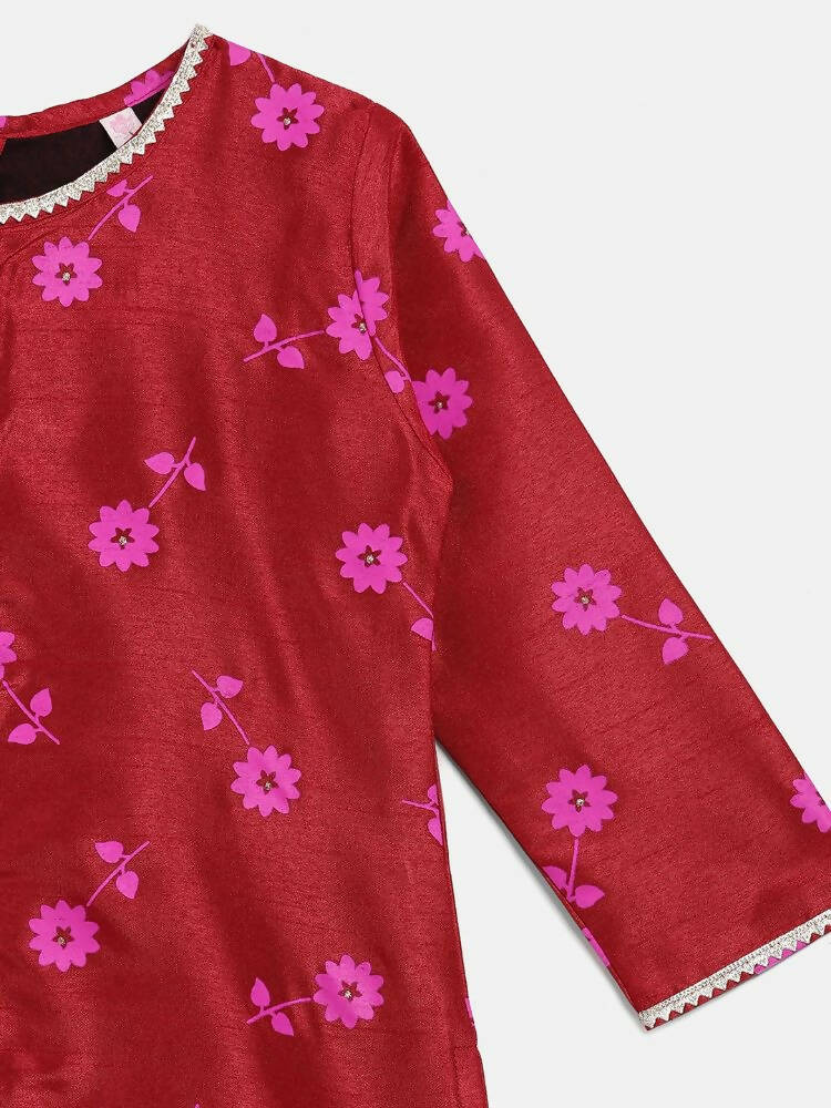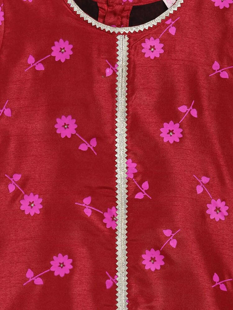 Ahalyaa Red Poly Silk Straight Printed Kids Kurta Palazzo Set For Girls