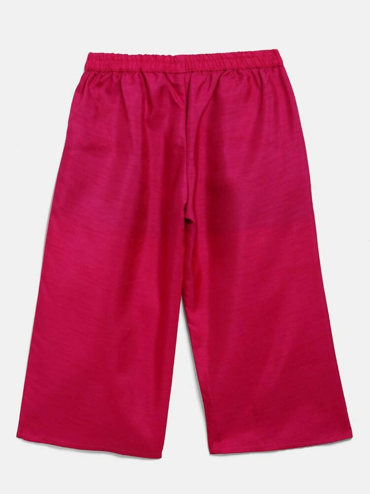 Ahalyaa Red Poly Silk Straight Printed Kids Kurta Palazzo Set For Girls This rich-looking kurta set is an ideal festive pick for little girls. It's...