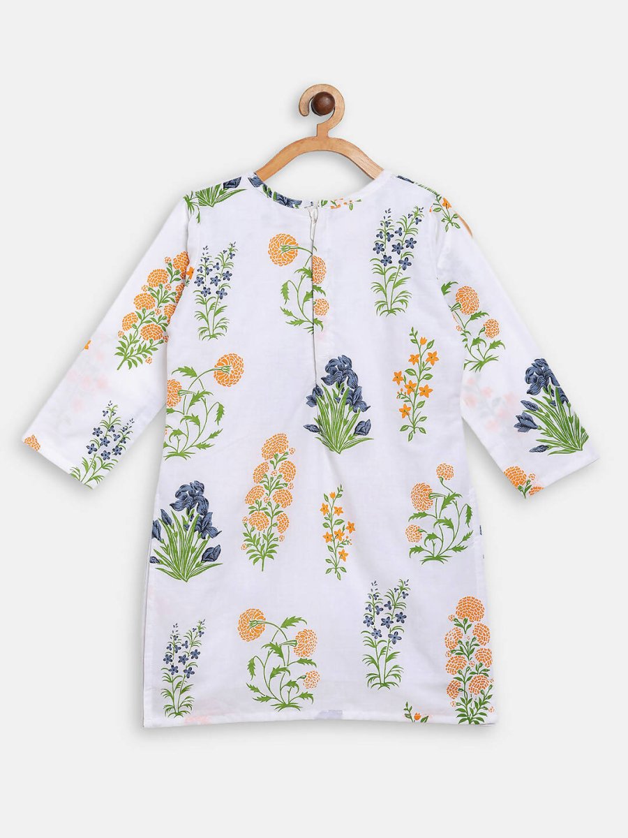 Ahalyaa White Cotton Straight Floral Printed Kids Kurta Pant Sets With Dupatta For GirlsThis offering by Ahalyaa is a perfect pick for a hot day fo...