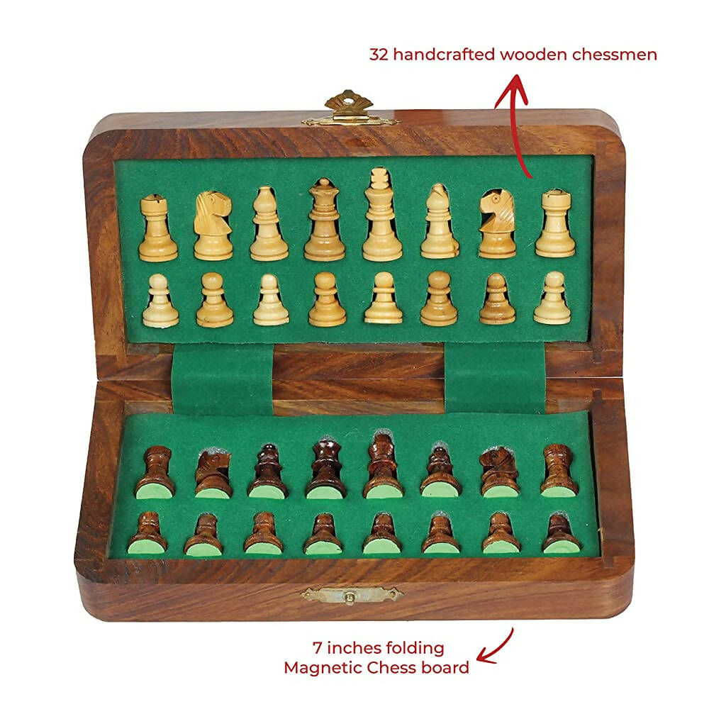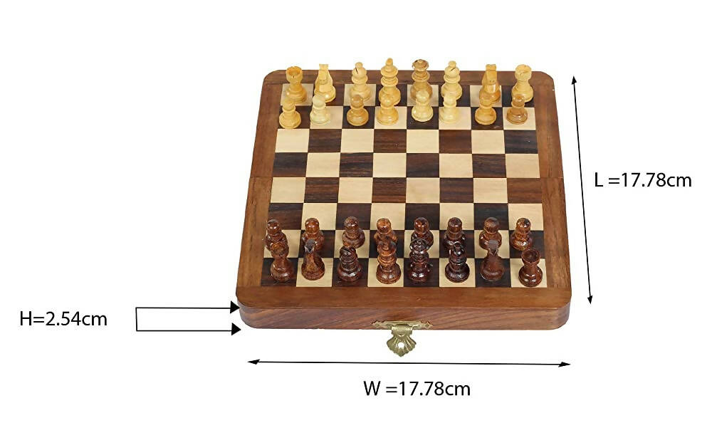 • Dimensions & Content: 1 Magnetic Wooden Chess Board, 7 × 7 Inches, Along With A Guidebook Containing The Game's Instructions And 32 Chessmen.