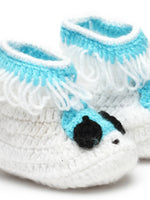Chutput Kids Woollen Hand Knitted Self Desgin Detailed Booties - White - 0-3 M