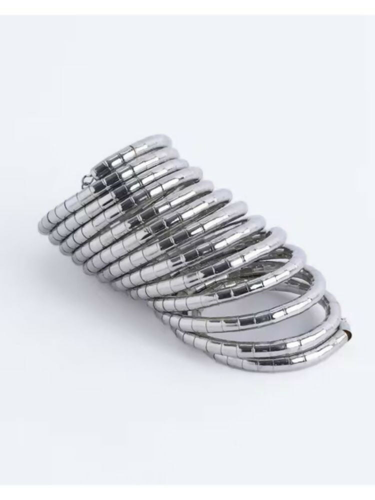 • Style Note: Embrace the charm of handcrafted elegance with the NVR Women Handmade Silver Plated Spiral Bangle. Featuring a sleek, contemporary spiral design and finished in a radiant silver tone, this bangle offers a perfect fusion of ethnic artistry and modern minimalism. Lightweight yet striking, it's ideal for daily wear, festive occasions, or layering with other bangles for a bold, boho-chic look. Whether paired with traditional attire or western outfits, this versatile piece adds a touch of effortless sophistication to any ensemble.