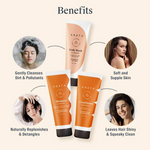 • Effectively deep cleanses pollutants and dirt in the gentlest way possible, leaving your skin and hair squeaky clean and healthy. Great for those who live in polluted urban environments, and those who want a gentle cleansing experience.