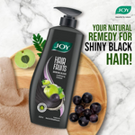 • Joy Hair Fruits Shining Black Conditioning Shampoo with Amla & Black Grapes offers quick nourishment to the scalp to revitalize dull hair and encourage shiny black hair. Regular use rejuvenates tired hair and offers healthy shine. Amla prevents hair loss and improves hair growth. Rejuvenating and revitalizing properties in amla helps make the hair exceptionally shiny and lustrous. Black grapes work towards making the hair smooth and gentle. Strengthens hair roots and gives beautiful and soft hair