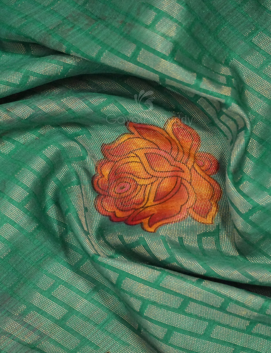 Sea Green Colour With Orange Blouse Cotton Brasso Saree By Gayathri Reddy Designer Studio